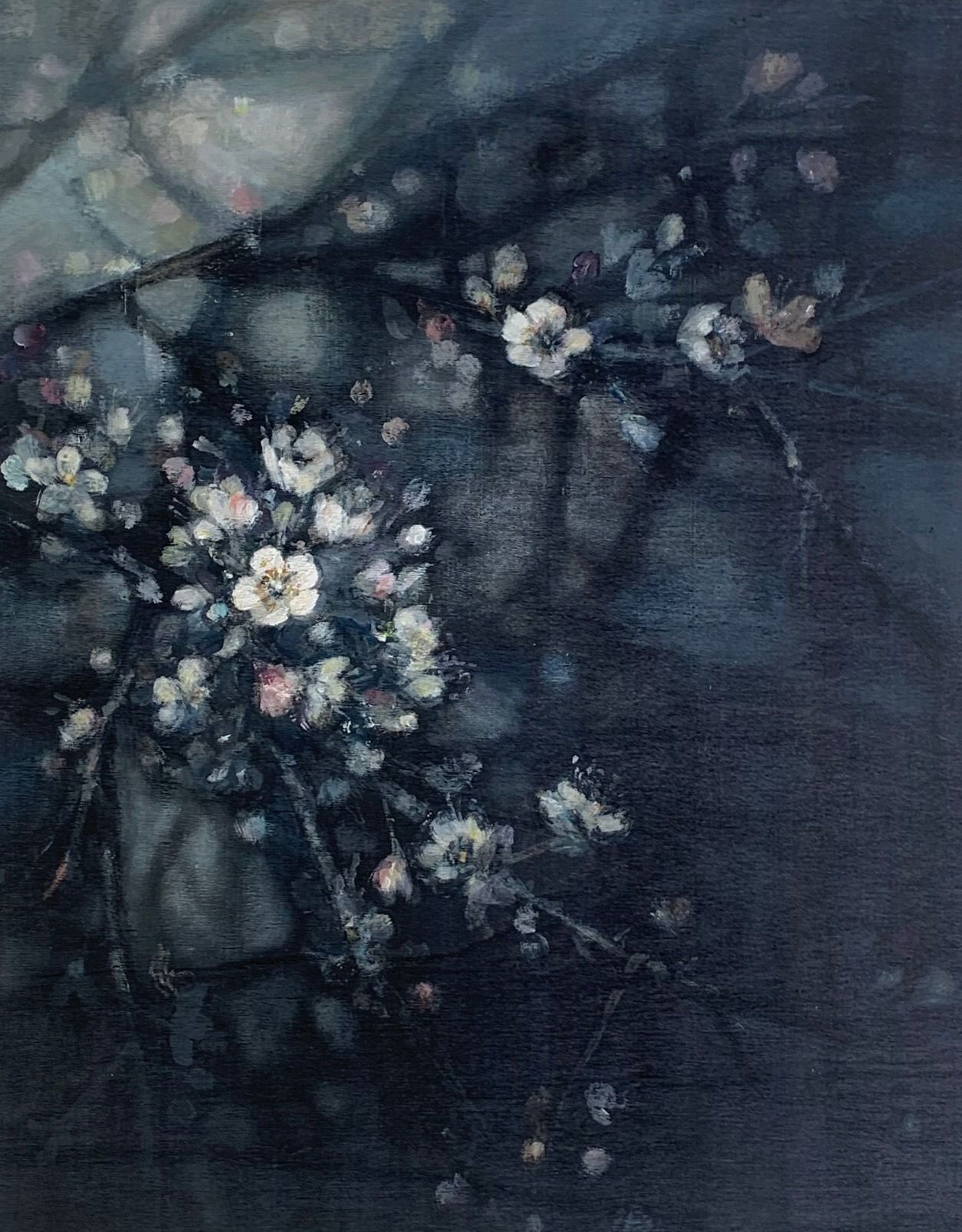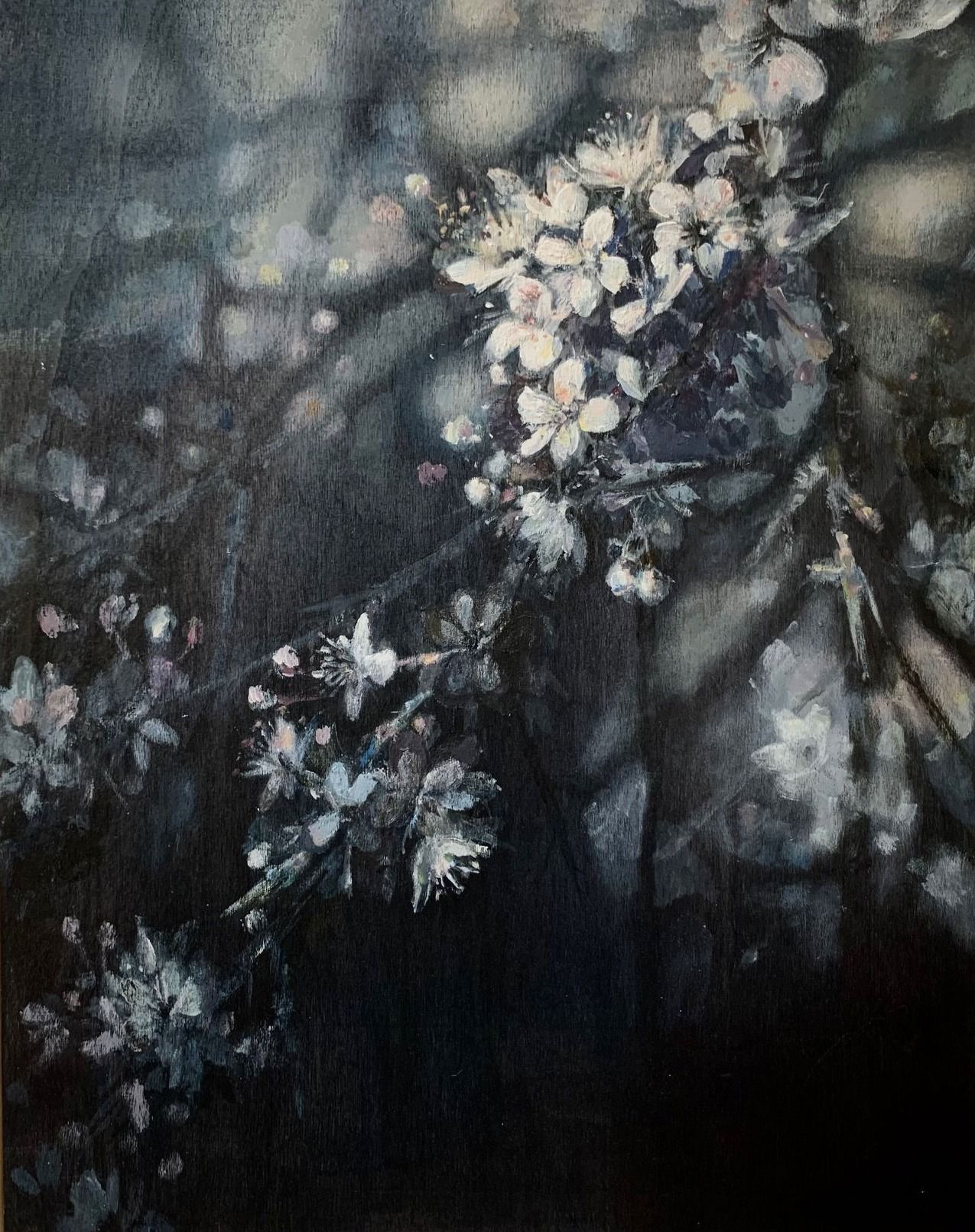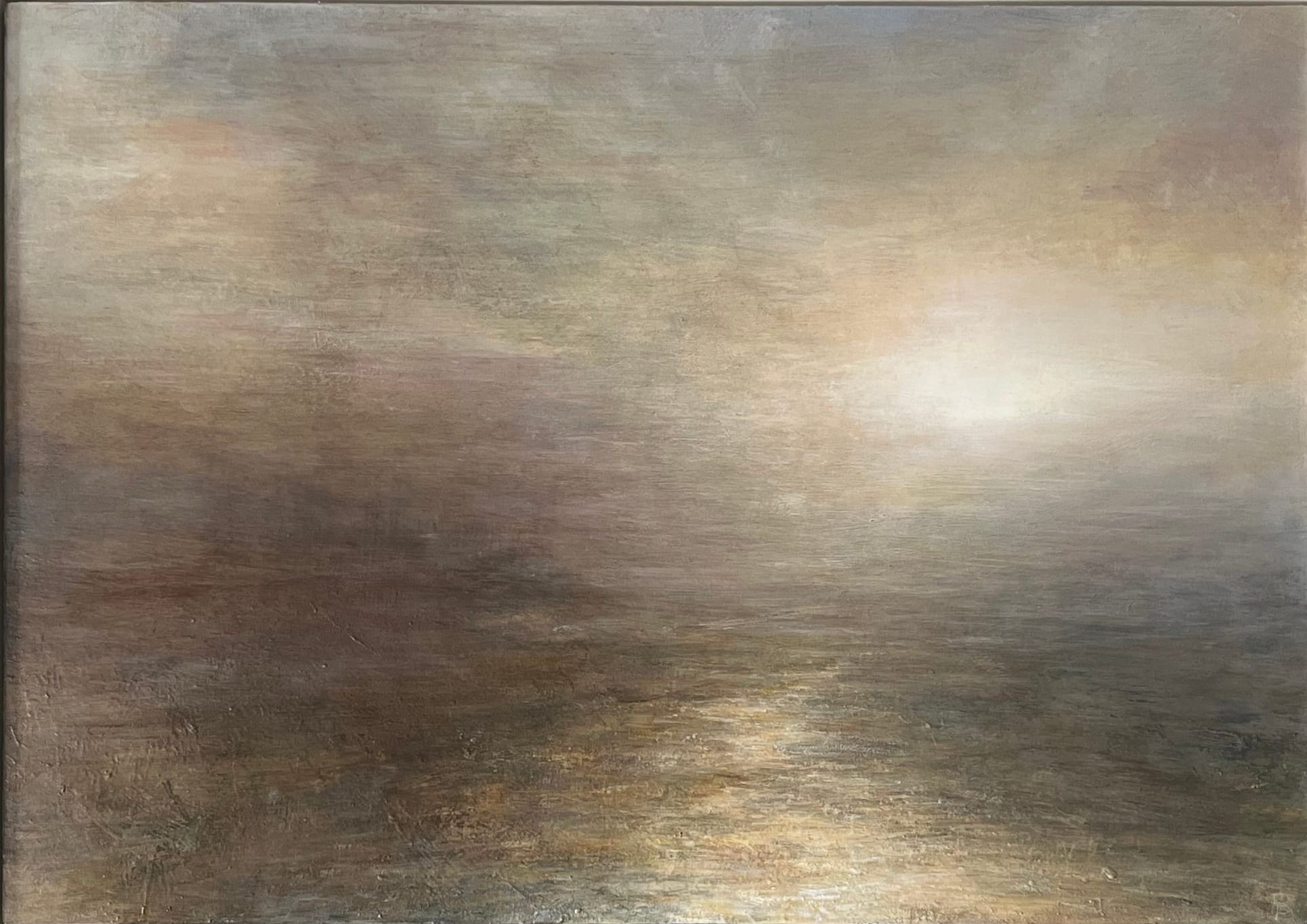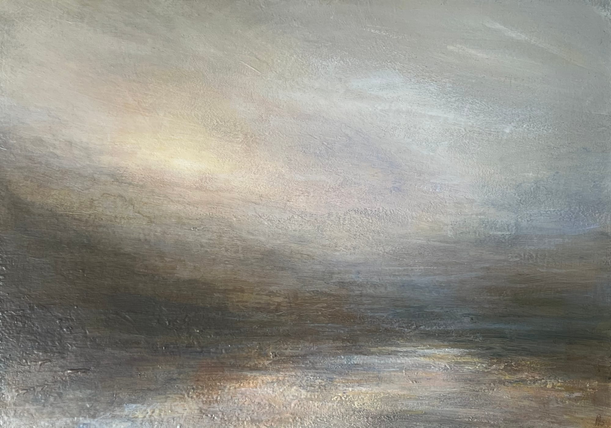 Her  paintings are created in a similar way to her prints, building up layers of tone and light.